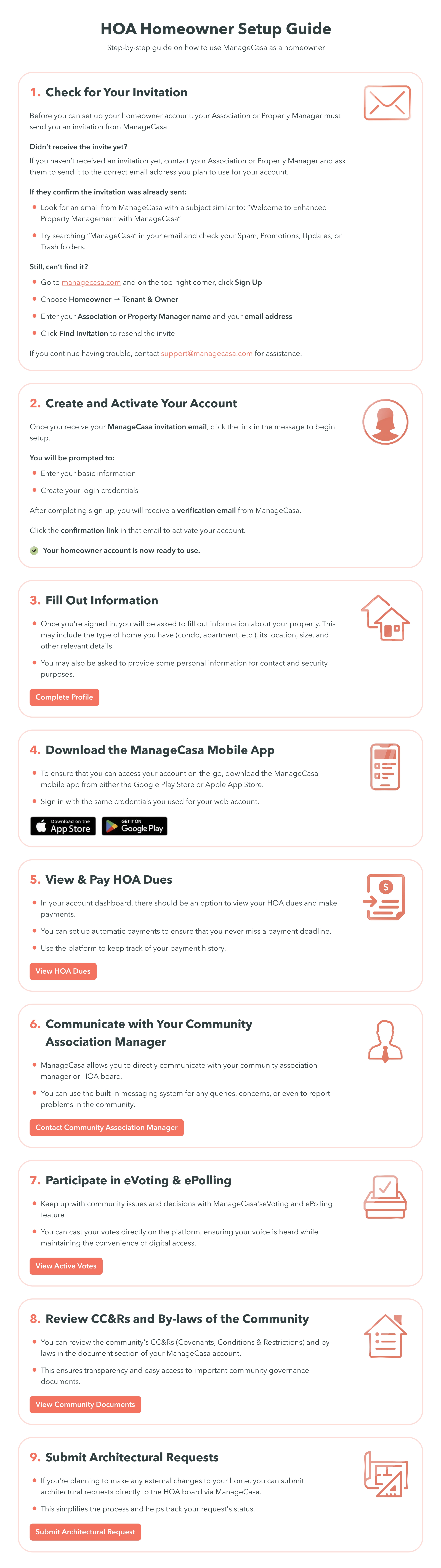 Association Homeowner Setup Guide April 13, 2026 20:54 Updated Related articles Owner Portal Mobile Application Pay your association fees online How to reset my Password Setting up your Association(s) Step 1: Configuring your account settings Comments 0 comments Please sign in to leave a comment.