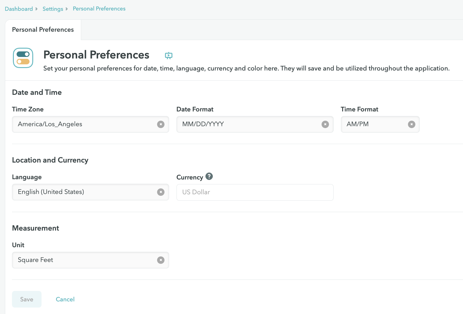 Under "Personal Preferences" you may update your time zone, preferred date and time format as well as the language in which you want to use the application.