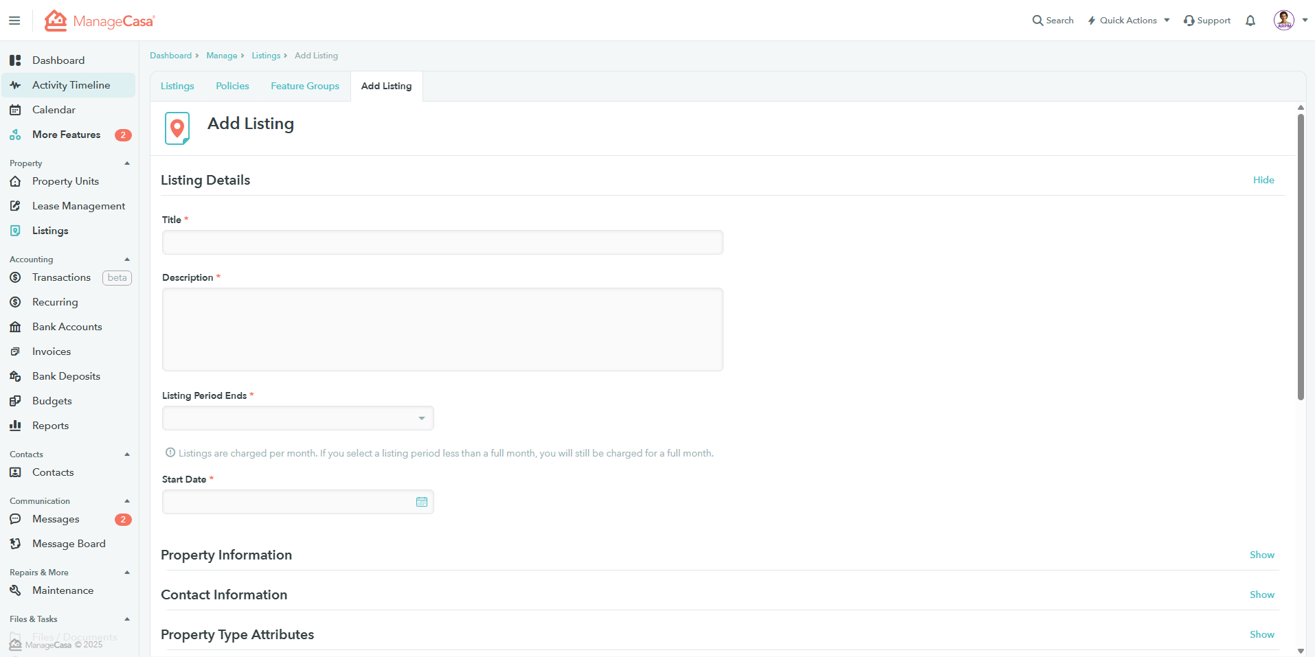 - Add all of the relevant information about your property listing, and be sure to include some high quality photos.
