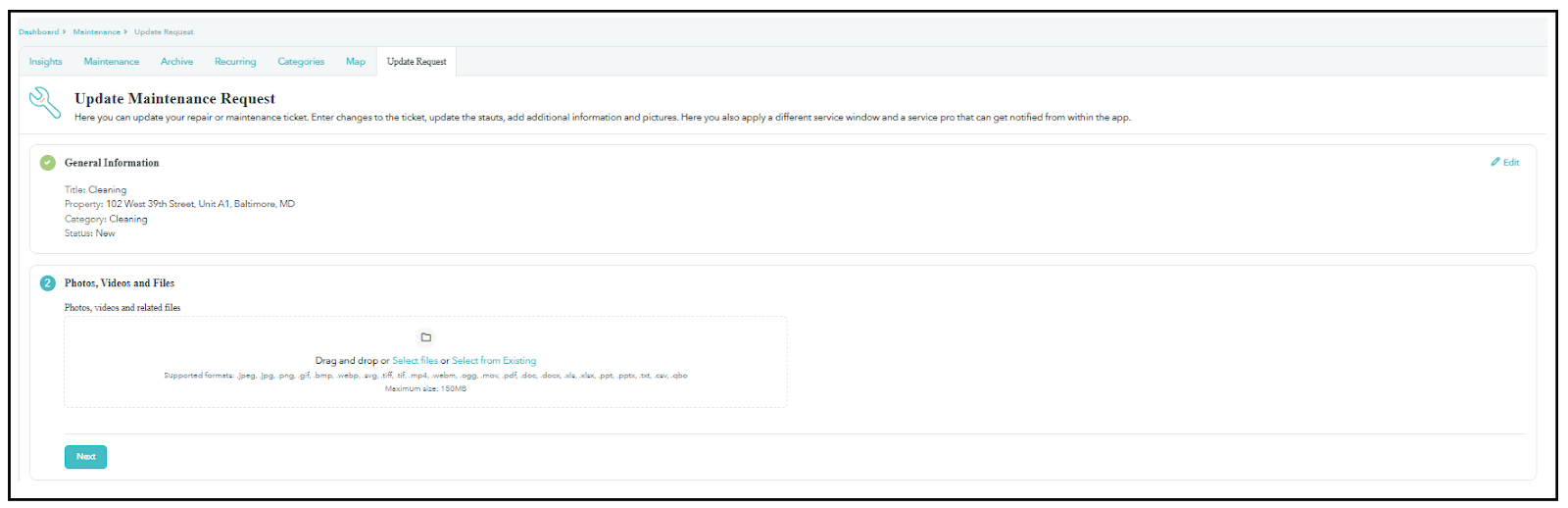 - Select an existing maintenance ticket you’d like to update, or create new ticket.
